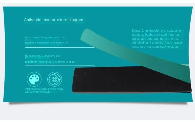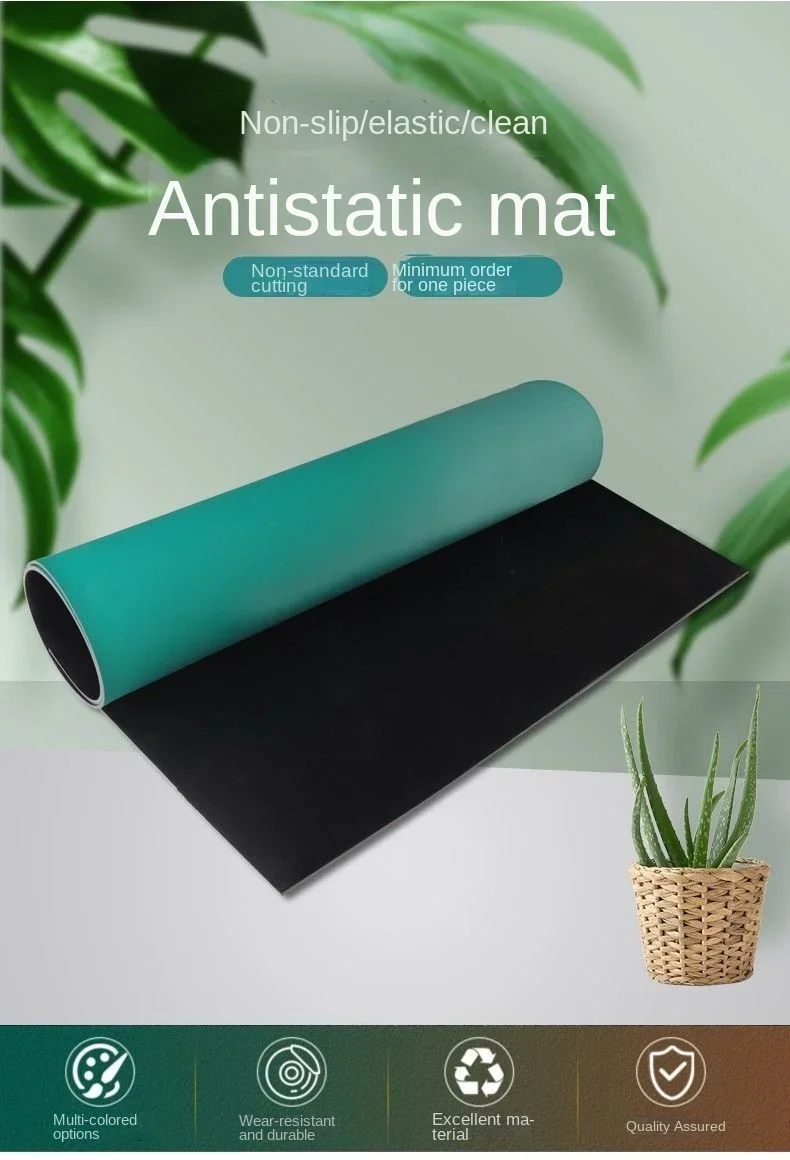 정전기 방지 고무 시트는 주로 정전기 방지 (정적) 재료 및 방산 정적 재료 합성 고무로 만들어집니다. 표면층은 약 0.5mm 두께의 소산 정전기 층이고, 하부 층은 약 1.5mm 두께의 전도성 층이다. 일반적으로 2mm 이중층 복합 구조에 사용됩니다. 화학 플럭스의 항 알칼리, 항 화학적 특성 및 내마모성, 세척이 용이합니다. 시스템에서 만든 합성 고무와 같은 고품질의 전도성 물질이있는 전도성 매트.