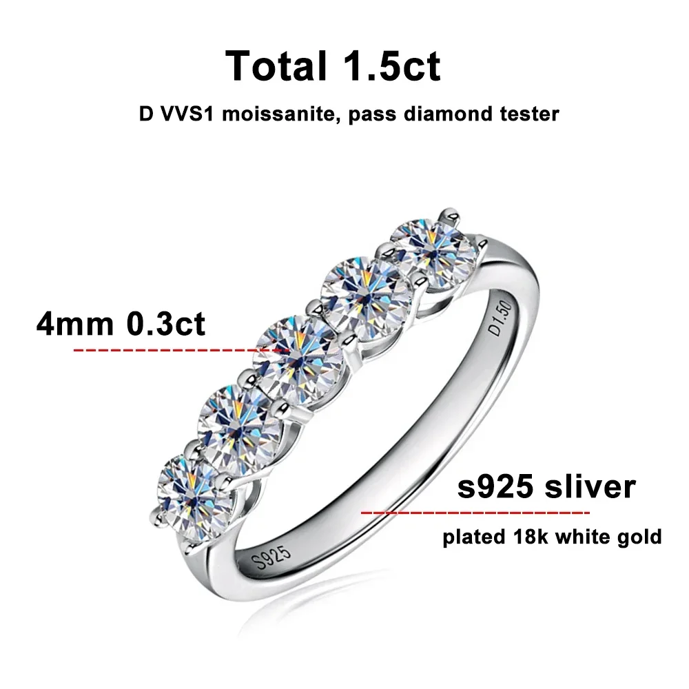 ALITREE D 컬러 여성용 모이사나이트 다이아몬드 반지, 클래식 매치 웨딩 이터니티 밴드, GRA s925 스털링 실버 링, 4mm