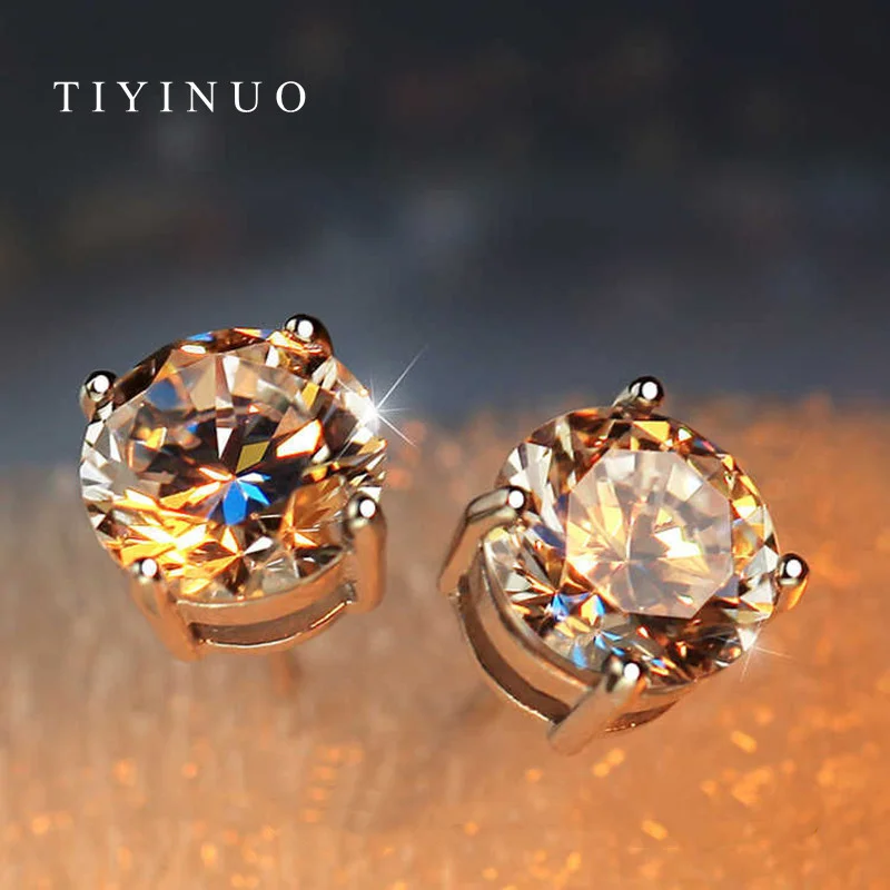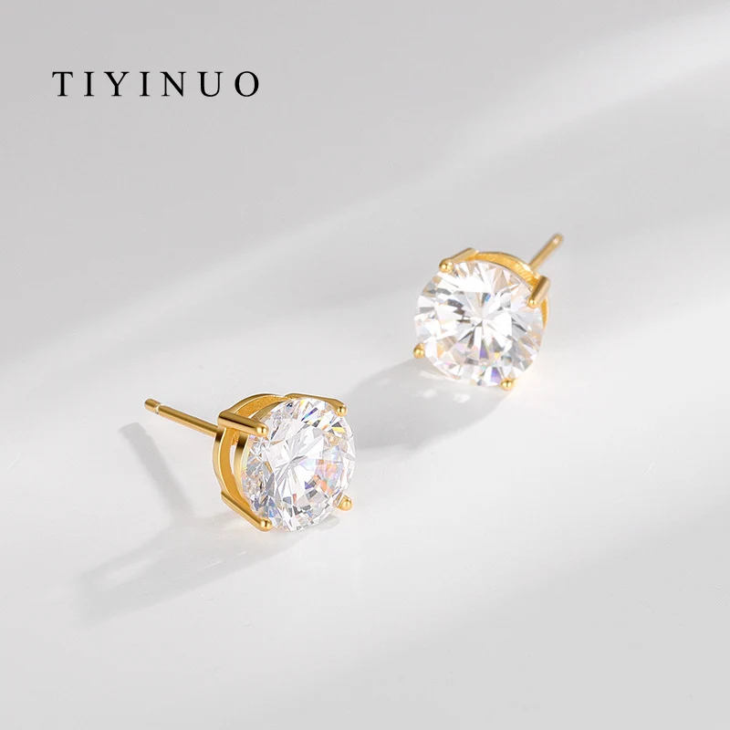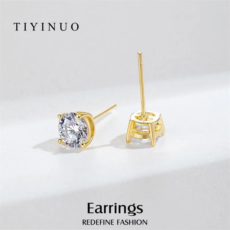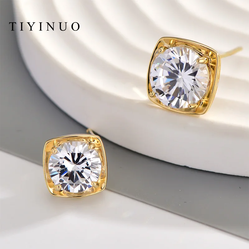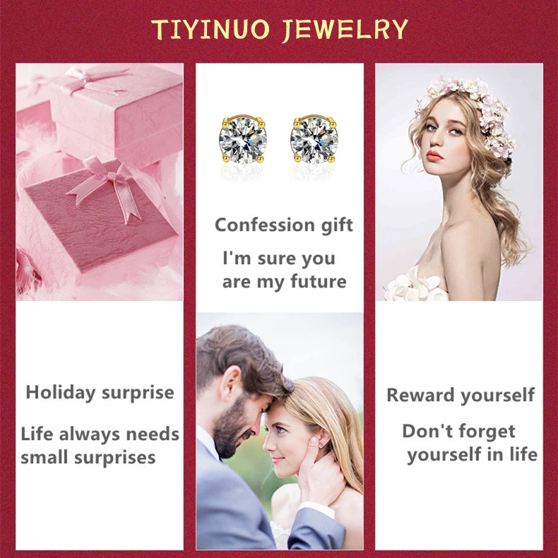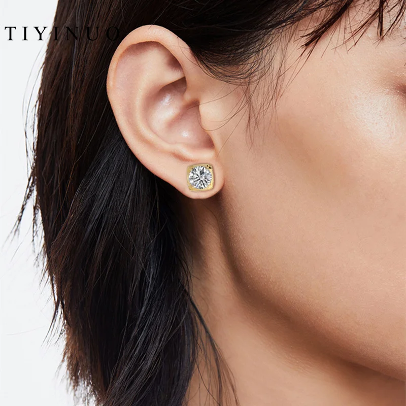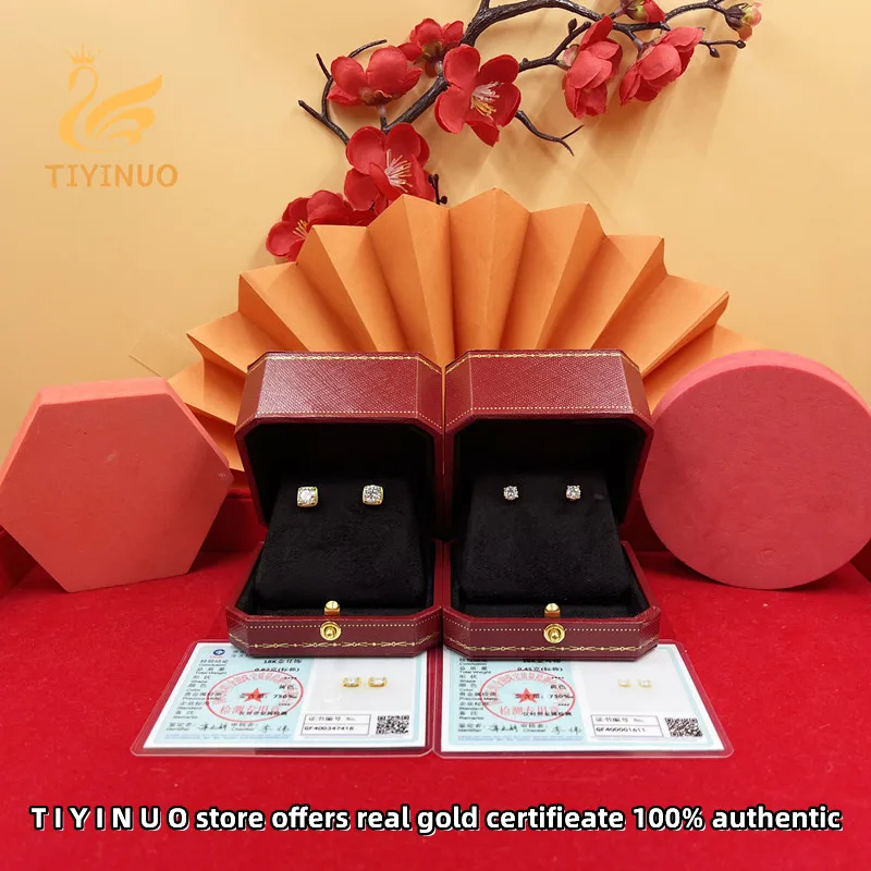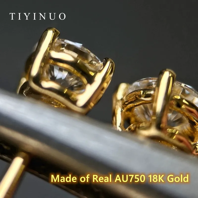 ToggleTIYINUO 진짜 18K 골드, 진짜 AU750 모이사나이트 다이아몬드 스터드 귀걸이, 고급 주얼리 빛나는 선물, 여성용 결혼 선물
