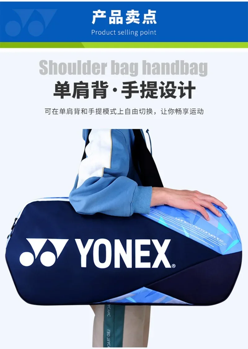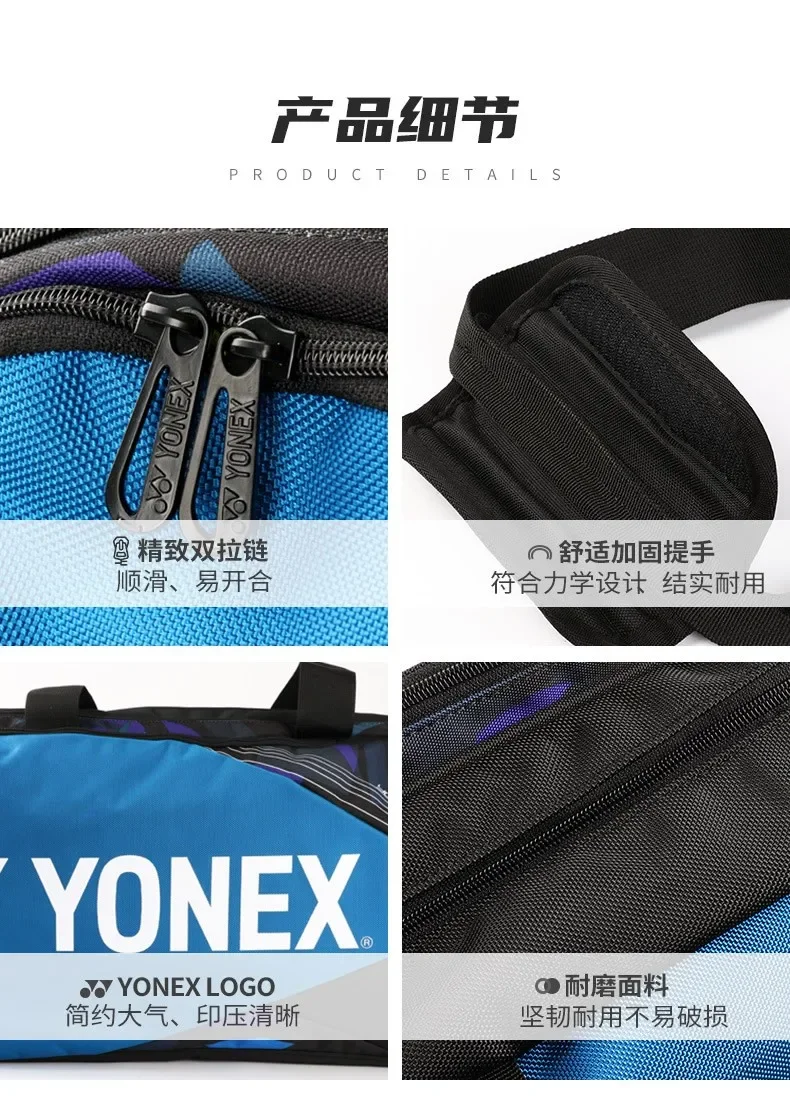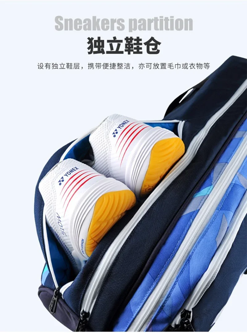 YONEX 남녀공용 배드민턴 테니스 가방, 휴대용 사각 가방, 독립 신발 칸막이, 대용량, 배낭 6 개