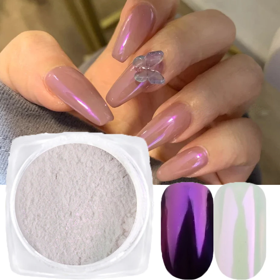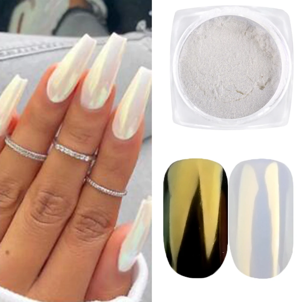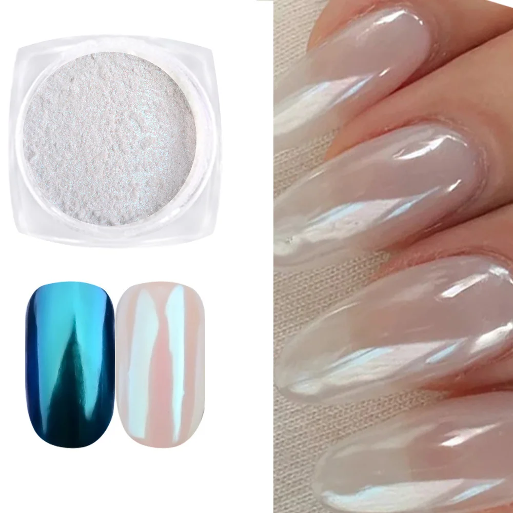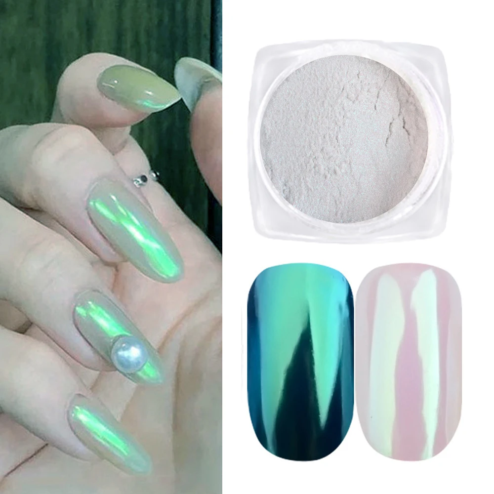 12 색/세트 오로라 쉬머 네일 미러 파우더 Net1-2g * 12 병 달빛 화이트 오로라 크롬 파우더 DIY 쉘 오로라 마찰 먼지
