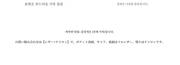 중간 부드러움의 가방은 내구성을 보장하면서도 부담 없이 사용할 수 있습니다.