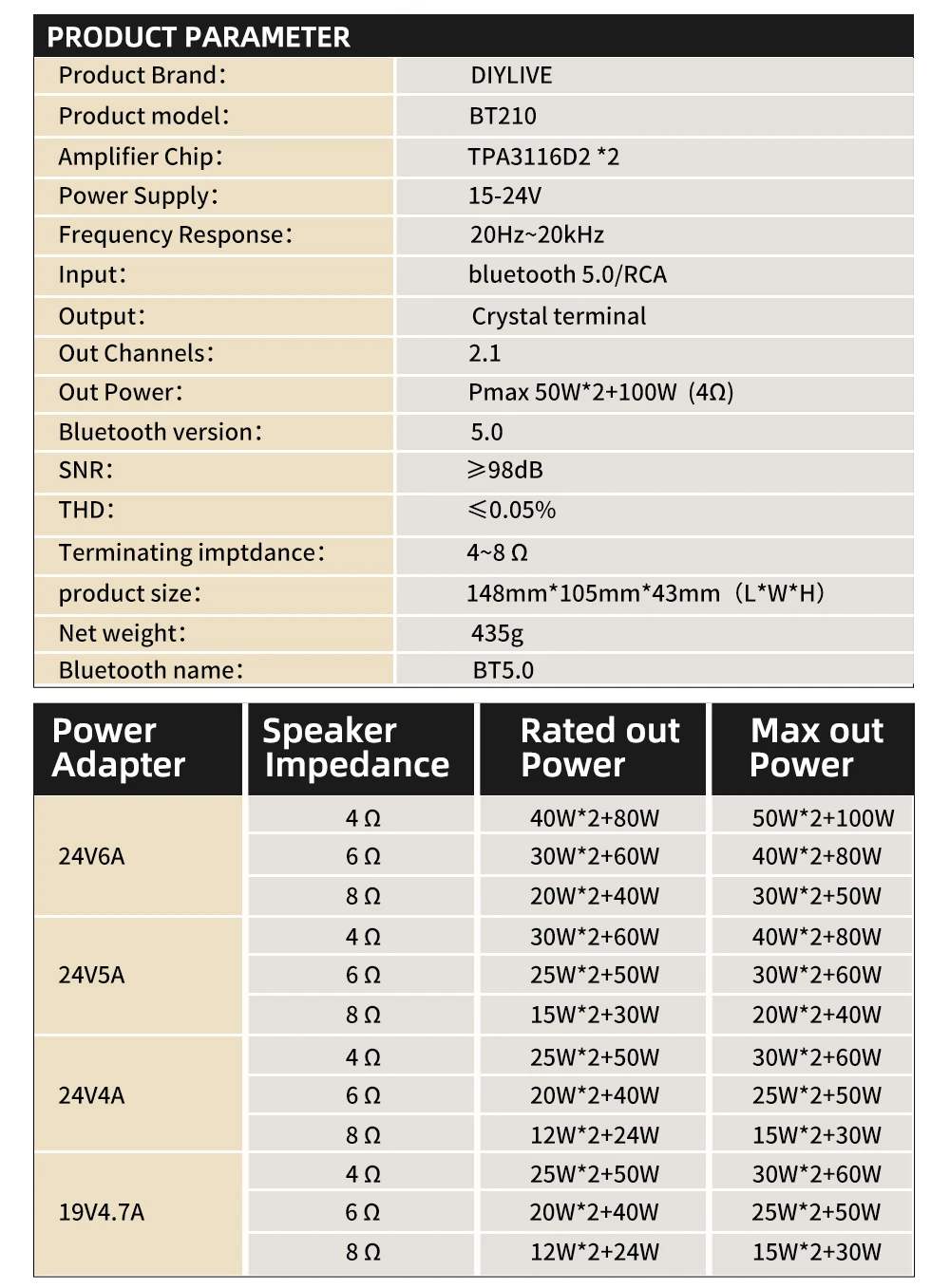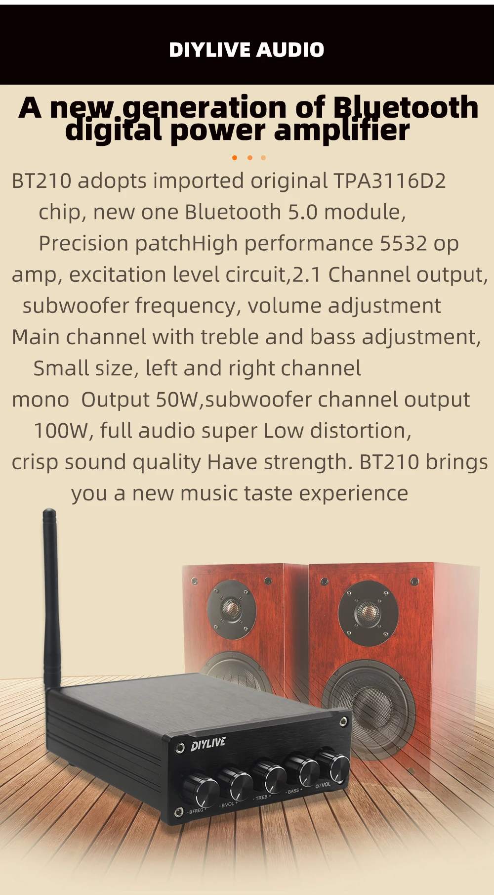 여러분께 소개할 이 제품은 DIYLIVE BT210 하이파이 2.0 풀 디지털 오디오 파워 앰프으로, 여러분의 생활을 더욱 편리하고 풍요롭게 만들어 줄 것입니다. 아래에서 제품의 특징, 사용 방법, 그리고 왜 이 제품이 여러분에게 이상적인지에 대한 상세한 정보를 제공하겠습니다. 정성껏 준비한 상품 설명을 통해, 여러분이 필요로 하는 최적의 선택을 할 수 있도록 도와드릴 것입니다.