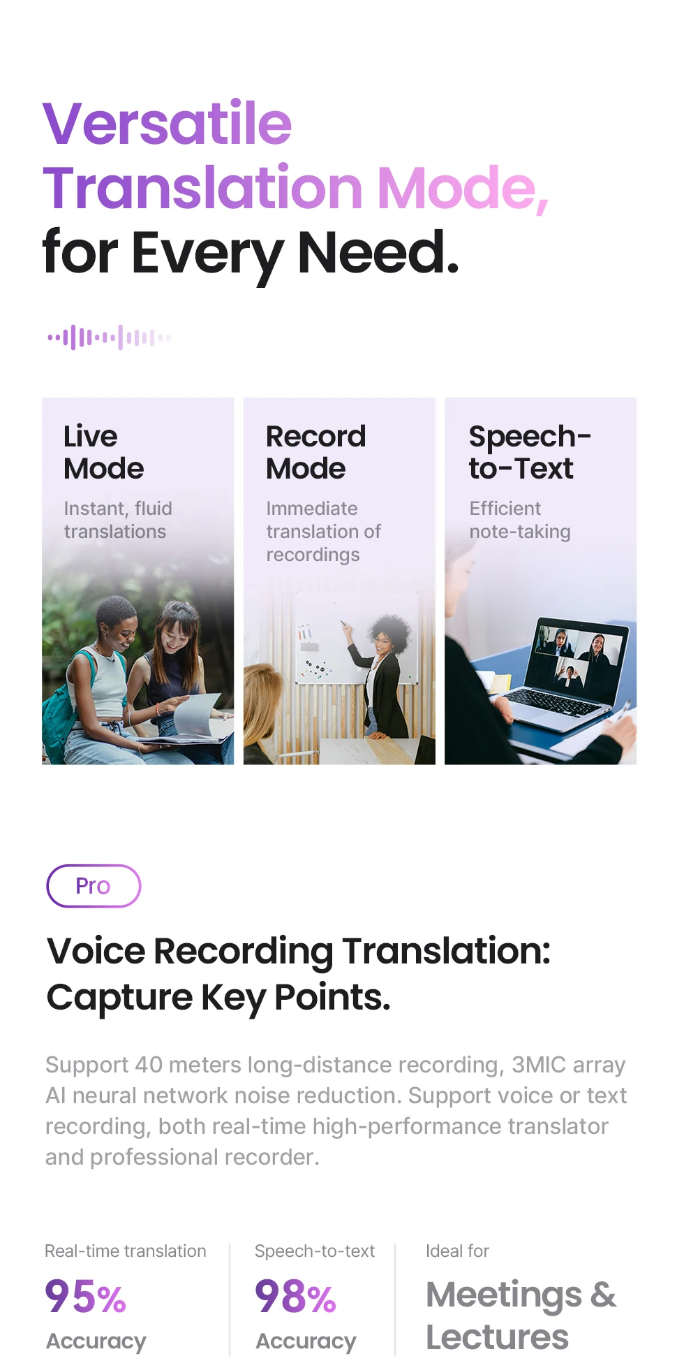 따라 잡기에 너무 많은 회의 노트 또는 수업 강의가 있습니까? 외국어 수업을 이해하는 데 어려움을 겪고 있습니까? 국제 회의를 위해 번역이 필요합니까?
