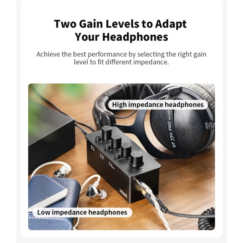 하이 게인 및 로우 게인 설정은 임피던스가 다른 헤드폰에 적합합니다.