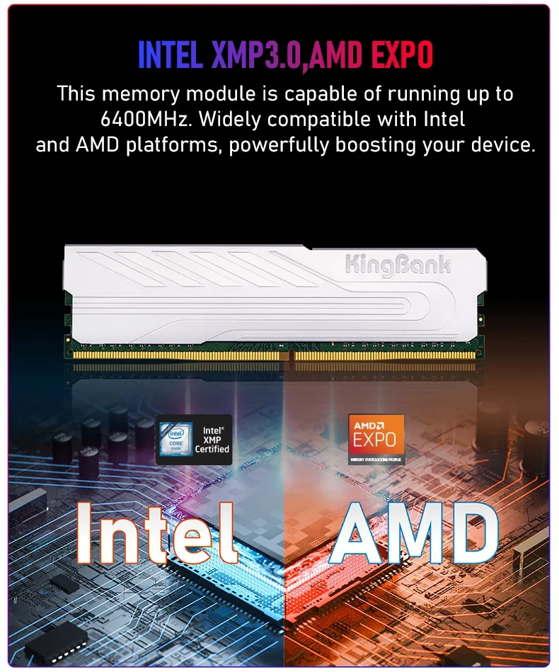 KingBank 하이닉스 A 다이 칩, DDR5 RAM, 인텔 XMP 3.0 AMD EXPO ICUE 호환 컴퓨터 메모리, 16GB, 32GB, 16 gbx2, 32 gbx2, 6400MHz