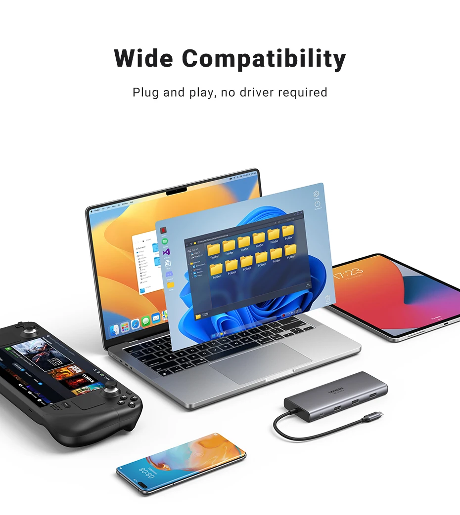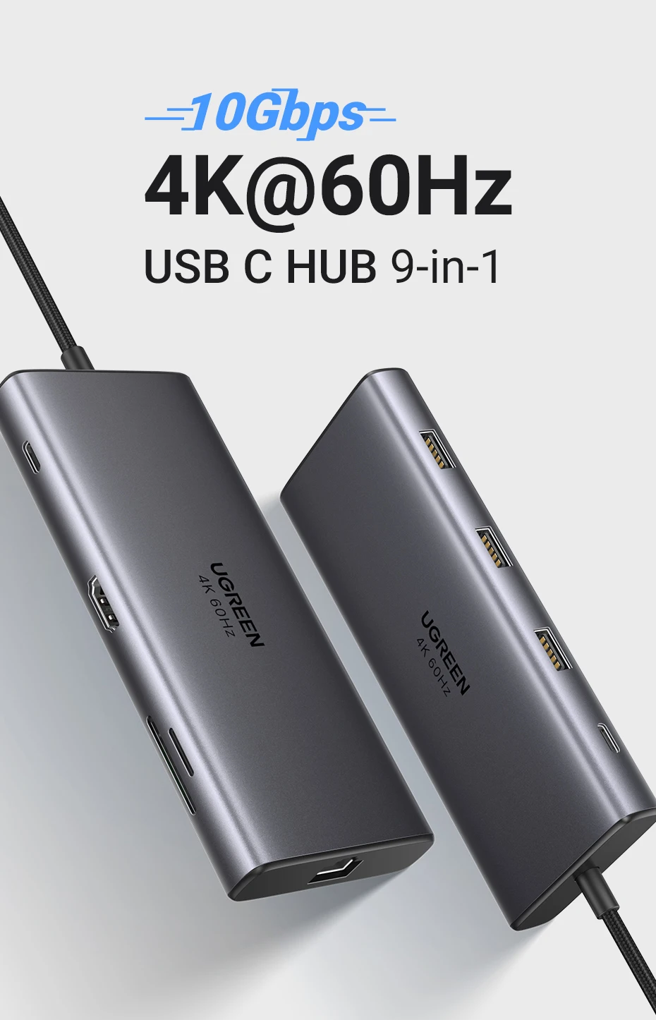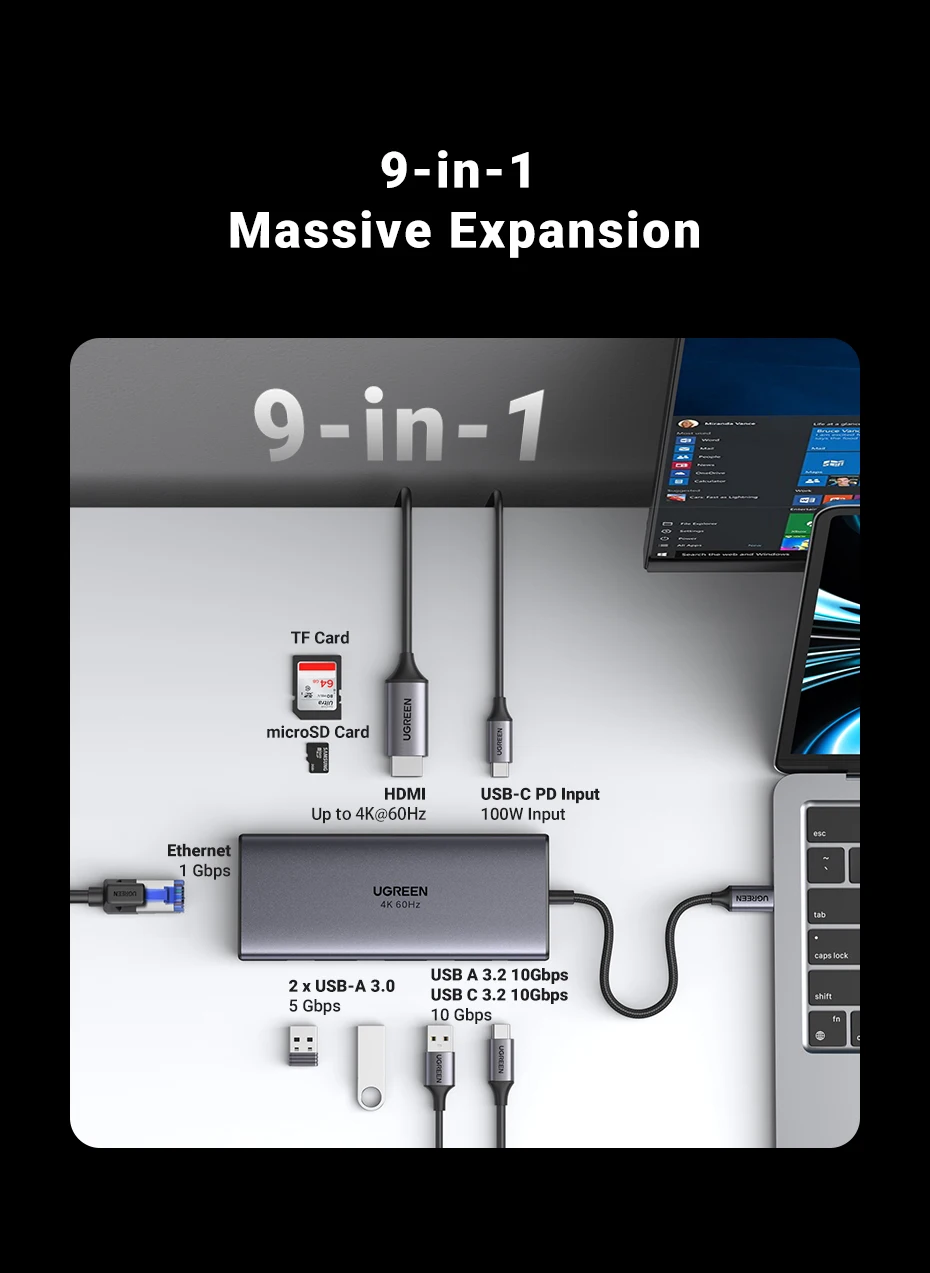 UGREEN Revodok 노트북 액세서리 DELL용 USB 허브, C타입, HDMI, 10Gbps, USB C 및 A, 1000Mbps, RJ45, PD100W, SD 및 TF, 9 in 1