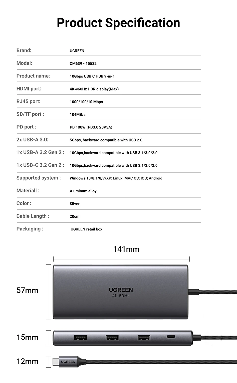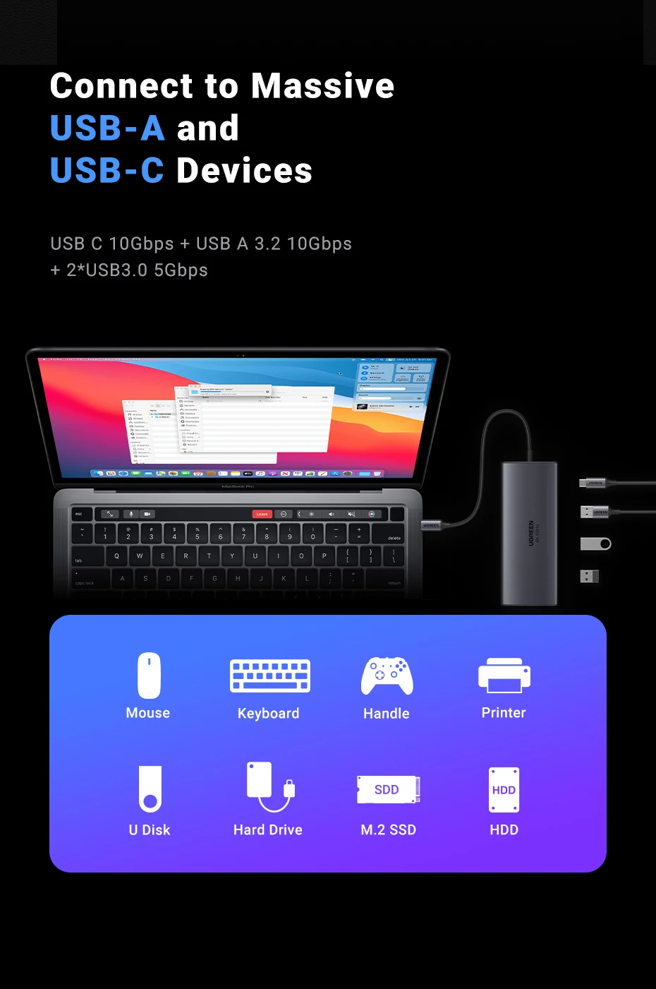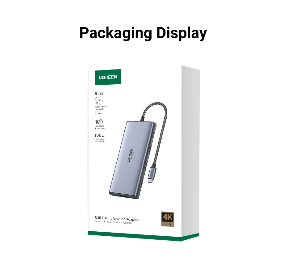 UGREEN Revodok 노트북 액세서리 DELL용 USB 허브, C타입, HDMI, 10Gbps, USB C 및 A, 1000Mbps, RJ45, PD100W, SD 및 TF, 9 in 1