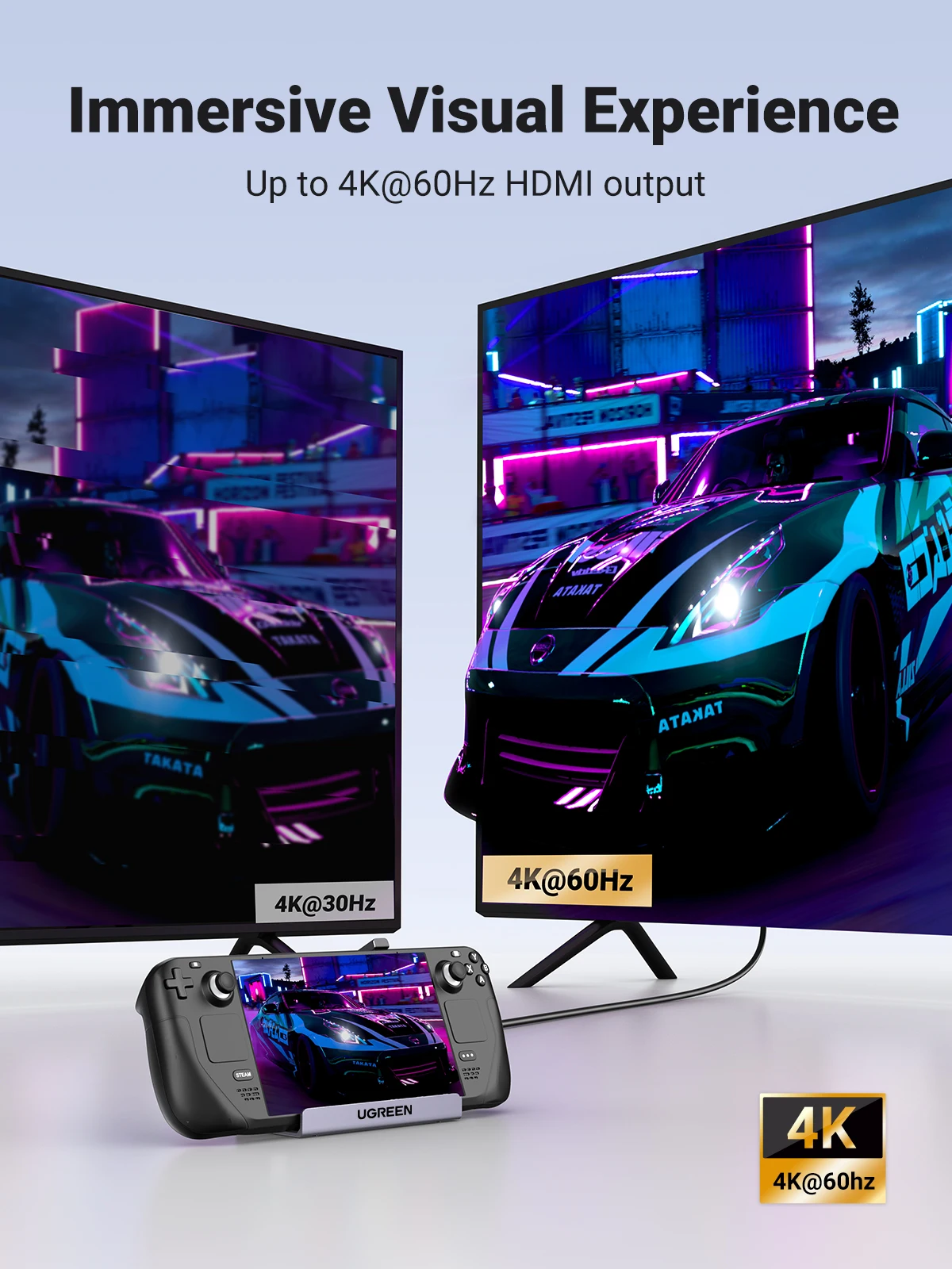 · 멀티 USB A & C 확장: UGREEN 스팀 데크 도크에는 2x USB 3.0 1x USB C 포트가 있으며 데이터 전송 속도는 최대 5Gbps 입니다. 외부 마우스, 키보드, 게임 컨트롤러, U 디스크, 하드 디스크 및 기타 장치를 Steam Deck에 연결하십시오.