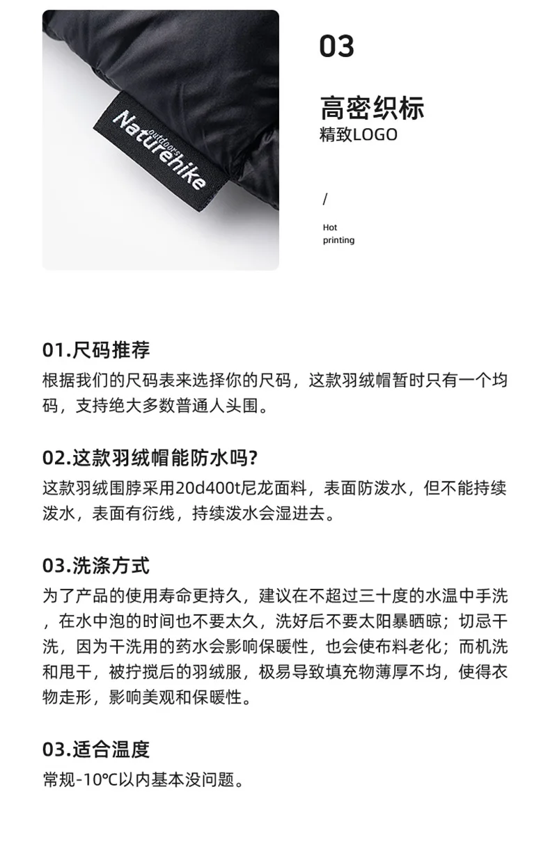 네이처하이크 초경량 휴대용 겨울 방수 따뜻한 3 피스 다운 모자 장갑 신발 커버 하이킹 캠핑 의류 장비