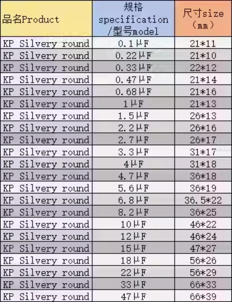 무료 배송 4pcs 와이어 드로운 실버 MKP 커패시터 비극성 주파수 분배기 커패시터 0.1 미크로포맷 3.3 미크로포맷 4.7 미크로포맷 5.6 미크로포맷 6.8 미크로포맷 ~ 47 미크로포맷