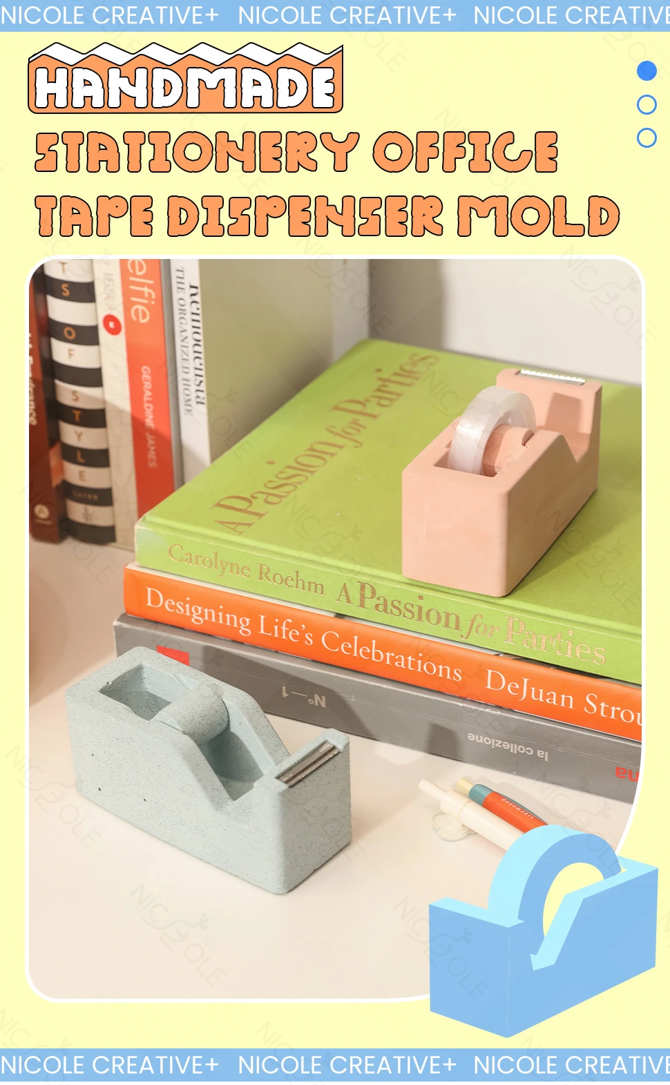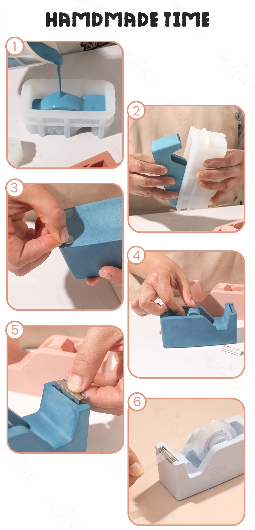 Boowan Nicole 수제 테이프 디펜서 콘크리트 실리콘 몰드, 수제 문구, 사무실 시멘트 Jesmonite 몰드, DIY 사무실 도구