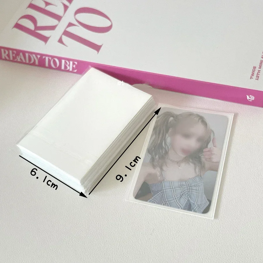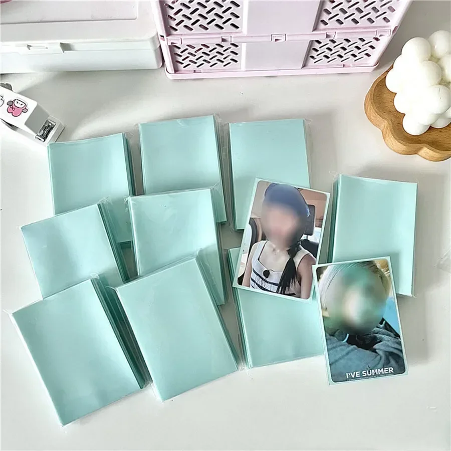 Kpop 카드 슬리브 마카롱 컬러 거치대, 홀로 엽서 탑 로드 필름 포토카드 게임 카드 보호대, 61x91mm, 50 개